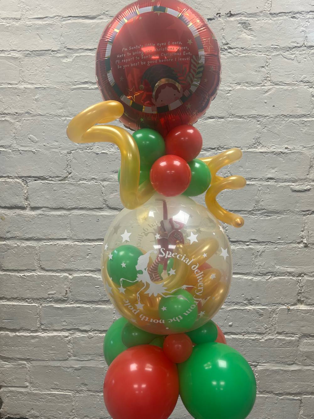 Each balloon features your child’s elf inside a clear latex balloon, styled with festive mini balloons and personalised with your child’s name.